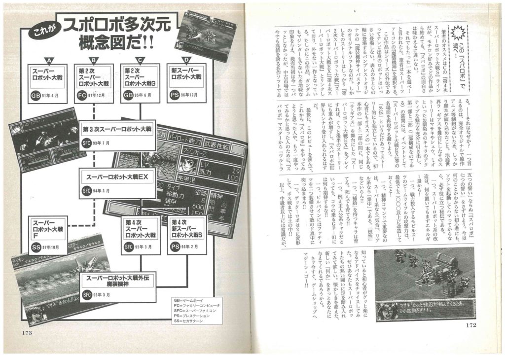 市川大賀さんコメント「僕は「あえて狙って」PSがメインルートではないシリーズ作品『スーパーロボット大戦』(略してスパロボ)の『新』をチョイス。とりあえず「原作アニメの声優が総登場してるから凄いんだ」という、冷静に考えたら「まったくゲームは褒めてない一押しレビュー」を書くという快挙を成し遂げました。しかも別冊宝島で(笑)」