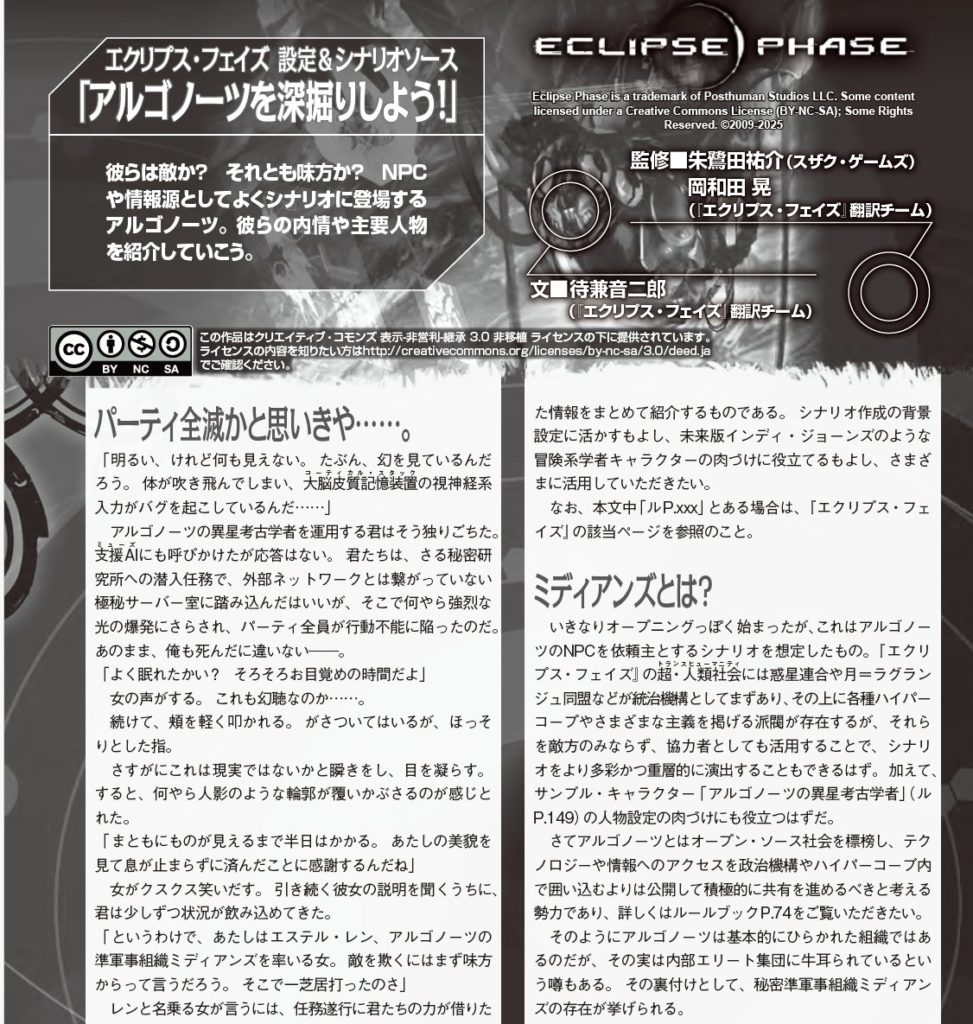 文:待兼音二郎(『エクリプス・フェイズ』翻訳チーム)、監修:朱鷺田祐介(スザク・ゲームズ)&岡和田晃(『エクリプス・フェイズ』翻訳チーム)